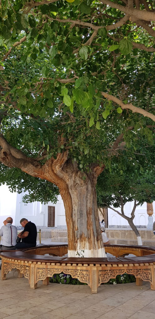 Giderek daha fazla insan bizden çalınmış olan dünya cennetini hatırlamaya ve onu yeniden oluşturmaya çekiliyor. Gerçekten de şu yaşamımızda cennetin sonsuz güzelliğini ve verimliliğini görebiliriz. Herkes için yeterince var. Bir ağacın gölgesi bizi dengeler, dinlendirir, güçlendirir ve dostluk sunar. Aşağıdaki ağaç Özbekistan’daki Bahauddin Nakşibendi Hazretlerinin bahçesinde….